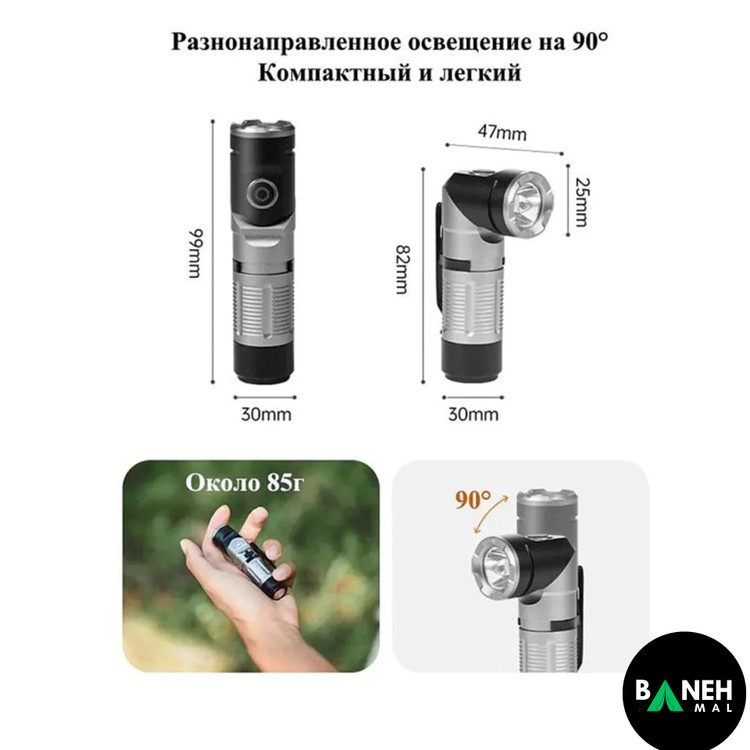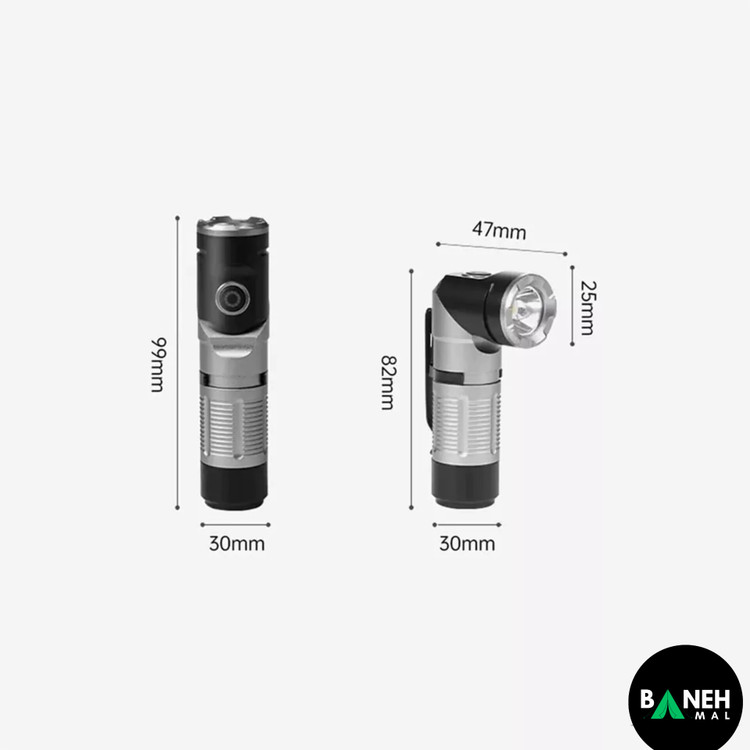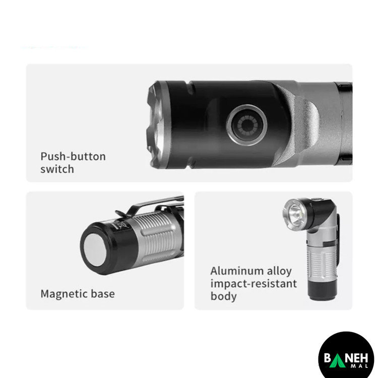 | قابلیتها | سر چراغ چرخان ۹۰ درجه، مغناطیس انتهایی، ضد آب و مقاوم، نشانگر شارژ باتری |