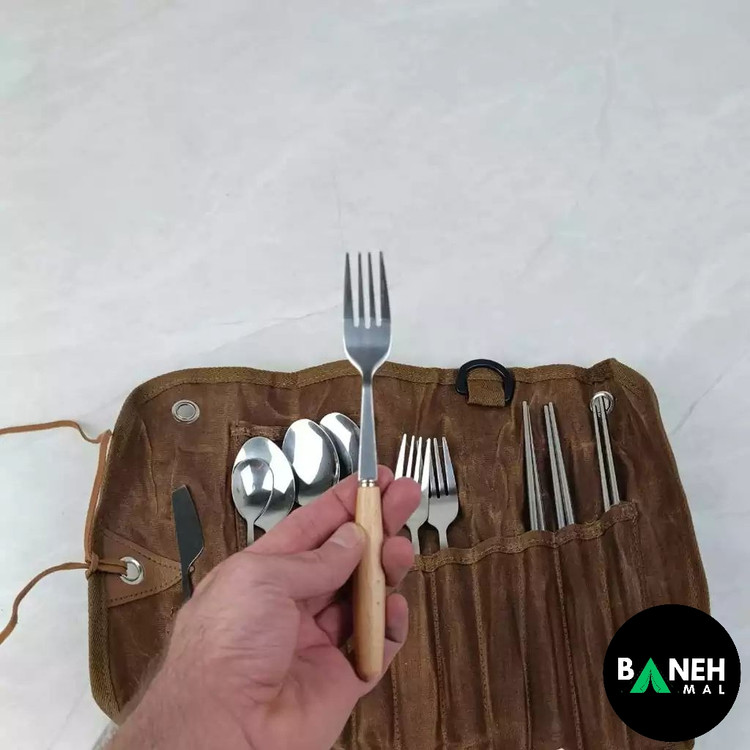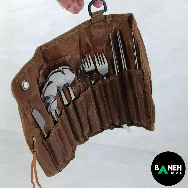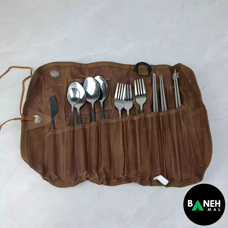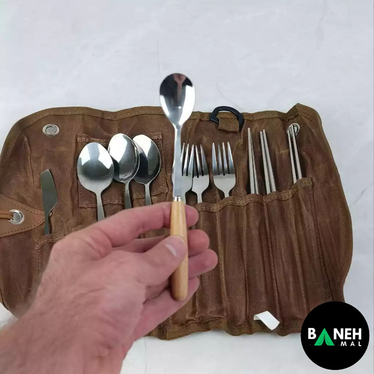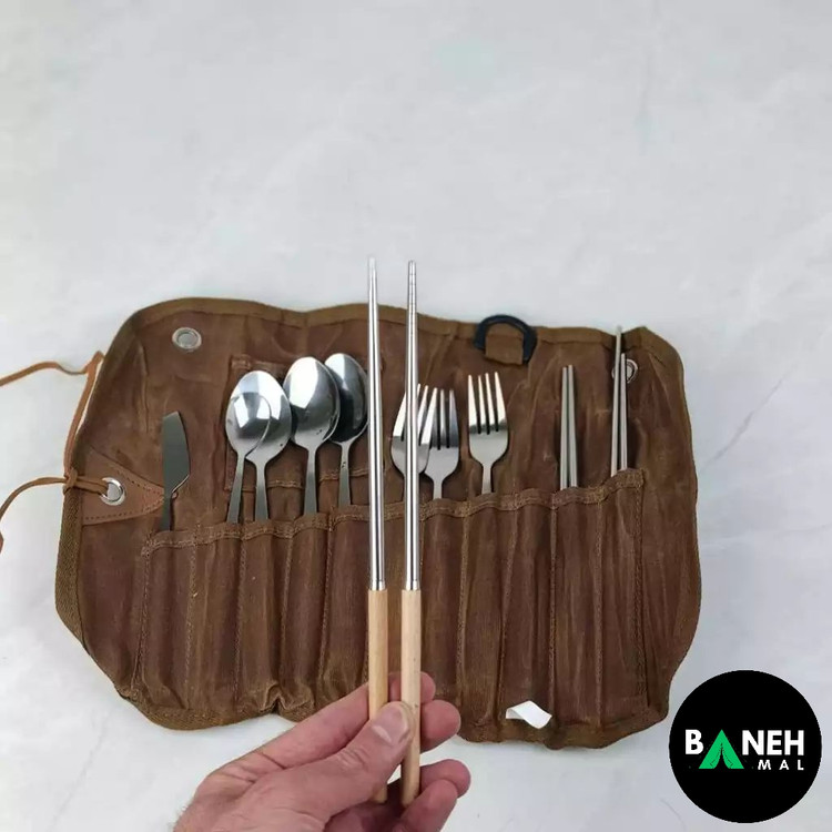 ست قاشق چنگال 3 نفره با کیف چرمی ماونتین هایکر مدل SZK453 – حرفهای برای کمپینگ و سفر