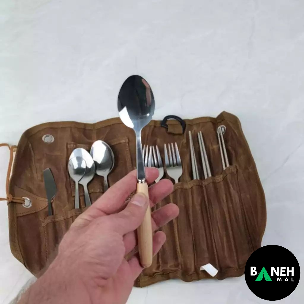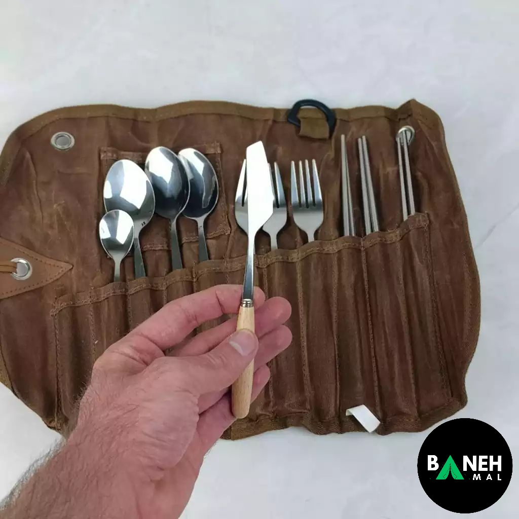 ست قاشق چنگال 3 نفره با کیف چرمی ماونتین هایکر مدل SZK453 – حرفهای برای کمپینگ و سفر