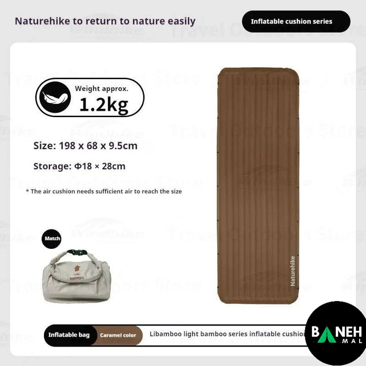تشک بادی بامبو نیچرهایک با طراحی کارآمد و جمعوجور، حمل و استفاده آسان را تضمین میکند: