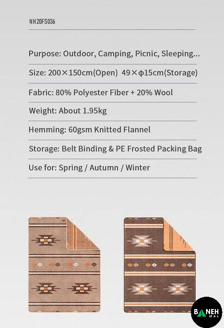 | کاربرد | پتو، زیرانداز، پوشش اضافی در کمپینگ و سفر |