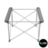 پایهها نیز از آلومینیوم مستحکم با ساختار تقویتشده تولید شدهاند که ثبات میز را حتی در سطوح ناهموار تضمین میکند.