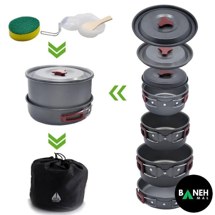 ست قابلمه ۴ تا ۵ نفره BRS مدل BRS-155A | سبک، مقاوم و کامل برای سفر و کمپینگ