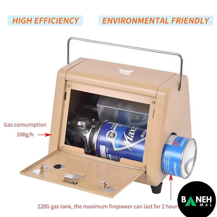 این بخاری از سوخت گاز بوتان و پروپان استفاده میکند و با توان خروجی ۱۵۰۰ وات، حرارت قابل توجه و بازدهی بالا برای گرم کردن فضا و پخت و پز ارائه میدهد.