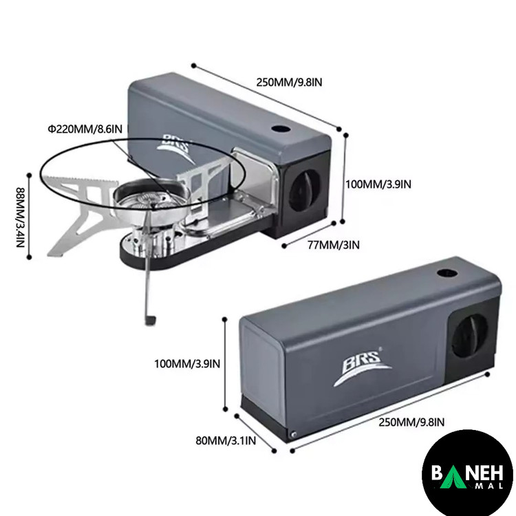 اجاق تاشو مدل BRS-97 با وزن ۱۱۱۰ گرم و بدنه از آلیاژ آلومینیوم، گزینهای سبک و جمعوجور برای پخت و پز در فضای باز است.