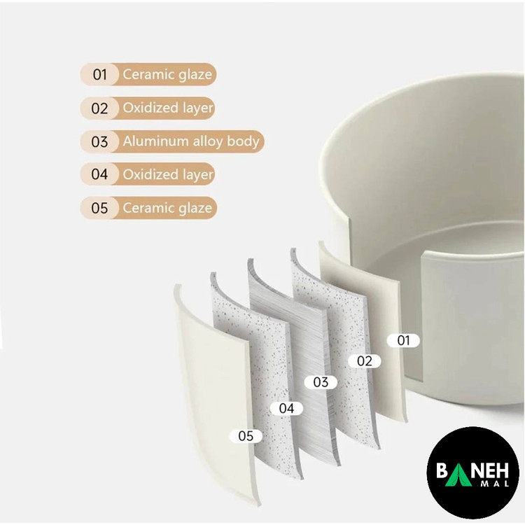 جنس بدنه ظروف ترکیبی از آلیاژ آلومینیوم ۳۰۰۳، فولاد ضد زنگ ۲۰۱ و سیلیکون بوده و دوام و مقاومت بالایی در برابر حرارت و استفاده طولانی دارد.