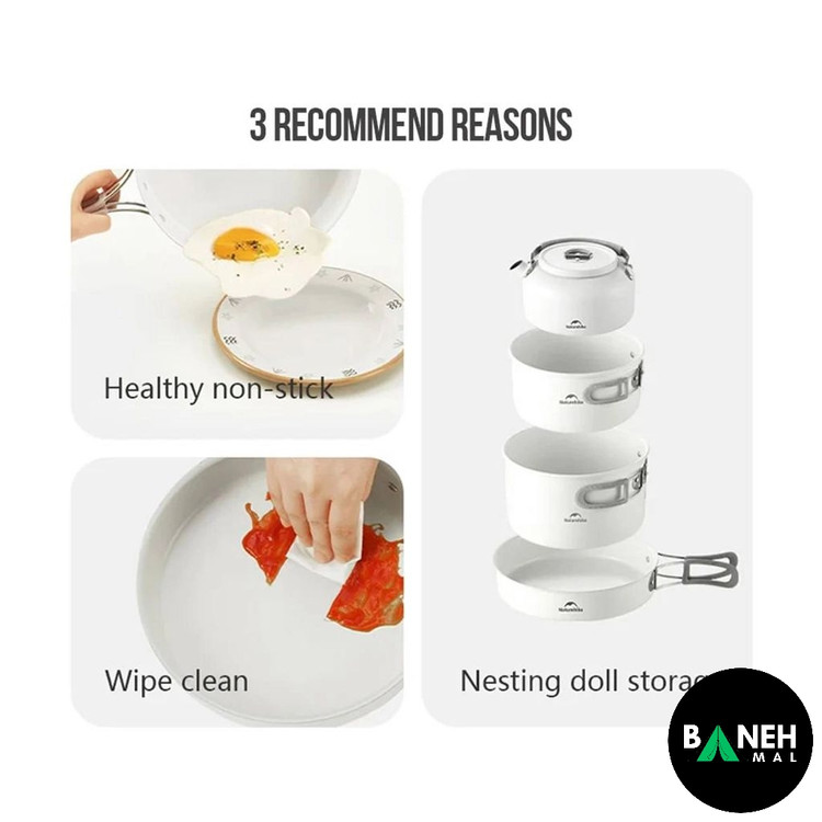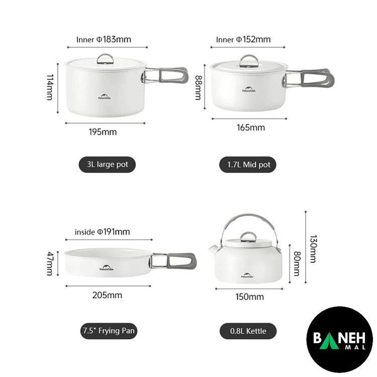 ست قابلمه سفید نیچرهایک مدل CNK2450CF013 | پخت و پز حرفهای در سفر و کمپینگ