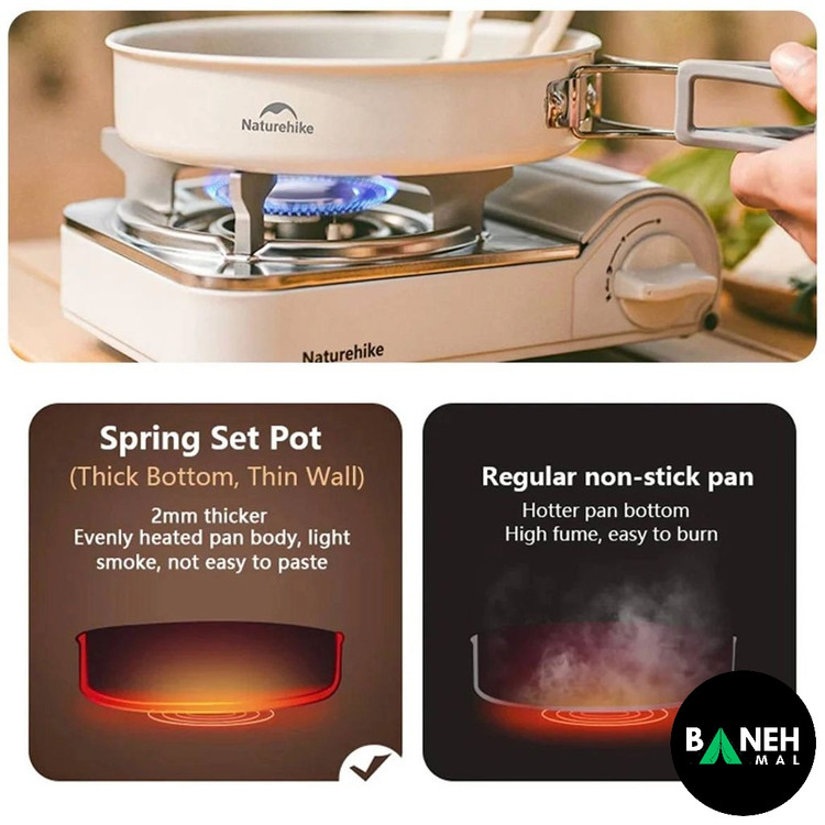 ستهای قابلمه و ظروف پختوپز نیچرهایک با طراحی استاندارد، پخت یکنواخت و آسان را حتی در شرایط خارج از منزل تضمین میکنند.
