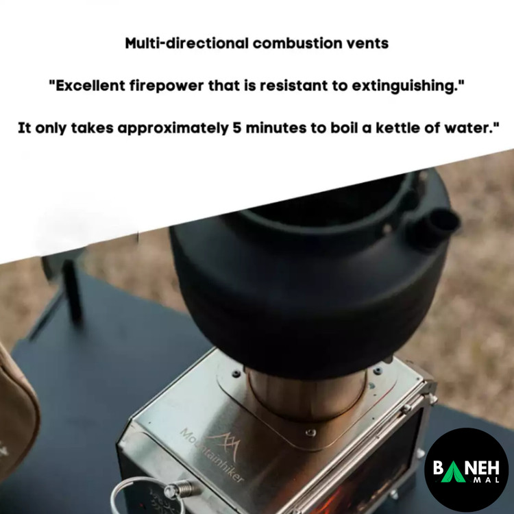 این بخاری با طراحی سبک و قابل حمل، انتخابی ایدهآل برای کمپینگ، کوهنوردی و طبیعتگردی است و با بهرهگیری از دریچههای تهویه متعدد، احتراق بهینه و گرمای متمرکز را تضمین میکند.