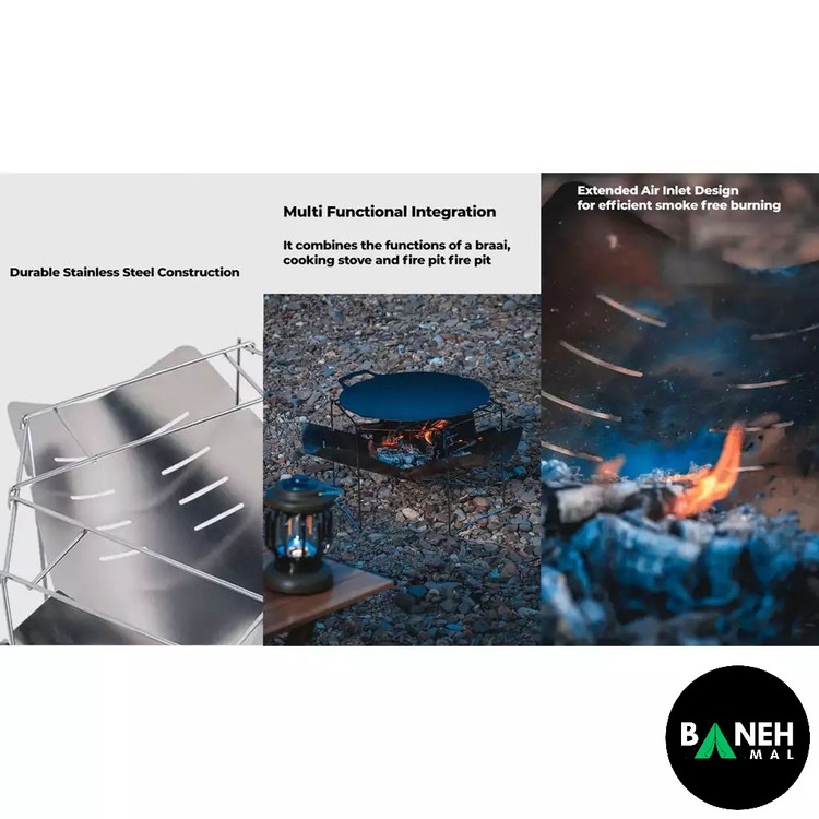 پایههای مقاوم و بدنه ضد زنگ، ثبات و دوام بالای اجاق را تضمین میکنند و تجربهای راحت و امن از کمپینگ و آشپزی در طبیعت ارائه میدهد.