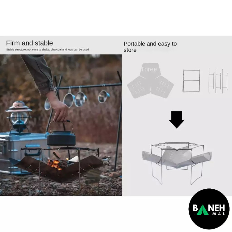 اجاق هیزمی FX-9188 با طراحی تاشو و سبک، امکان پخت و پز سریع و ایمن را حتی در شرایط محیطی سخت فراهم میکند.