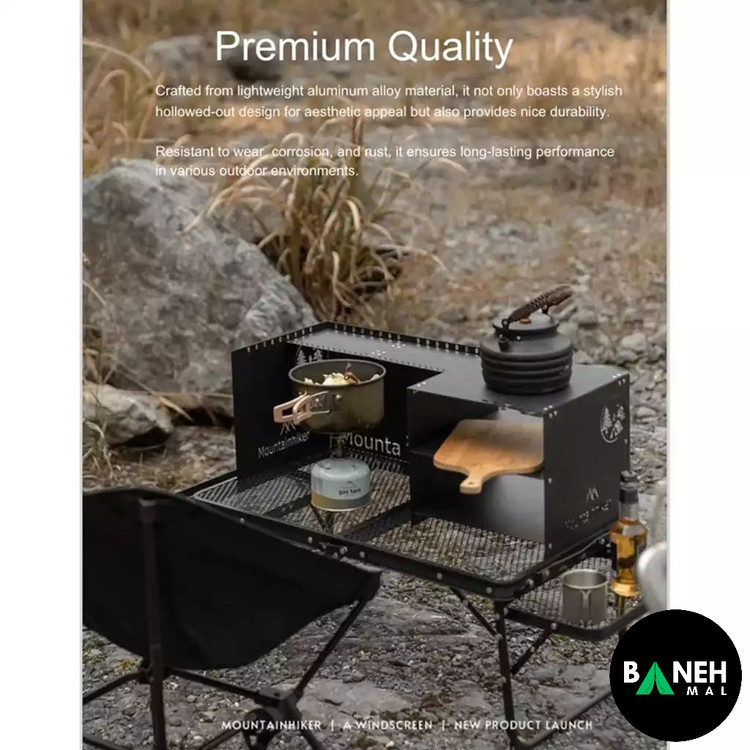 بادگیر دور آتش و اجاق SZK740 ماونتین هایکر با طراحی سه طبقه و جنس مقاوم آلومینیومی، بهترین انتخاب برای کمپینگ و طبیعتگردی در محیطهای بادی است.