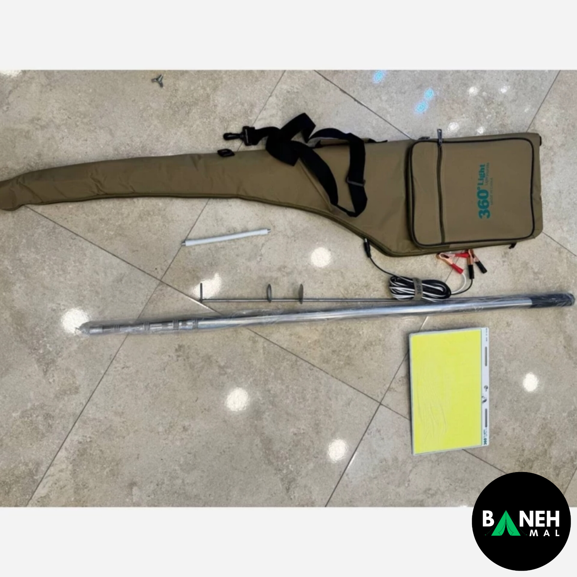 رابط فلزی جهت نصب لنسر داخل زمین ، شارژر فندکی ماشین ، کیف مخصوص حمل ، گیره باتری ، کابل ۶ متری ، لنسر ۶ متری